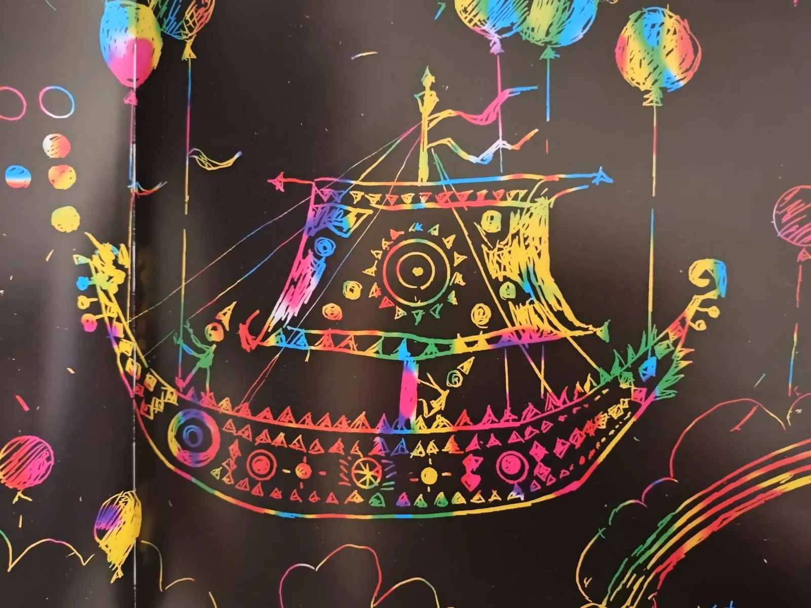 一打開《1是1艘船》映入眼簾的就是喚起我兒時記憶,帶著一點奇幻神秘的美麗刮畫,這樣子的繪畫搭配可愛逗趣的數字童詩,所有的一切都恰到好處的可愛。