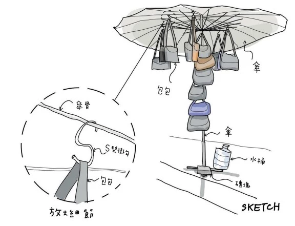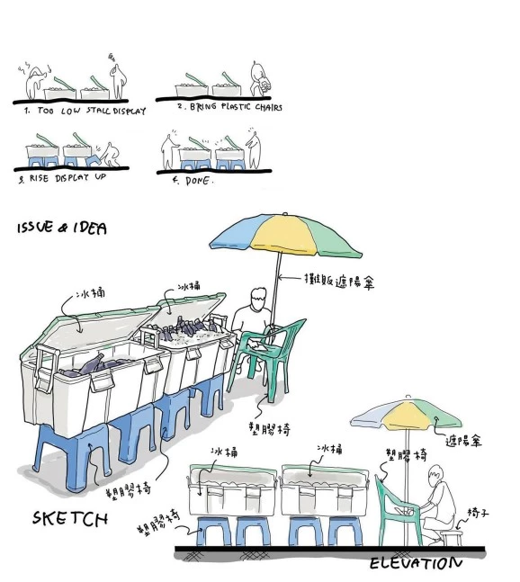 當有東西要賣,但天氣又熱得需要撐傘時,這兩件事就自然被合而為一了。