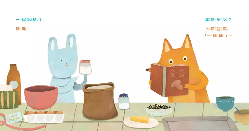 整件事是從做蛋糕開始的,兩位主角為了準備朋友的生日禮物,捲起衣袖想要做一個代表心意的蛋糕,但一開始就卡關了,食譜上的一點點鹽巴是多少呢?怎麼樣才是一點點?