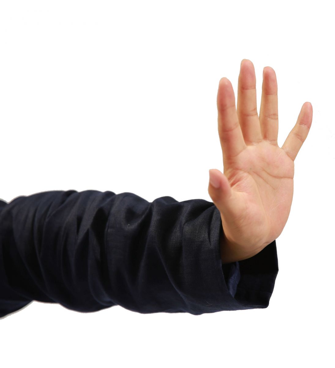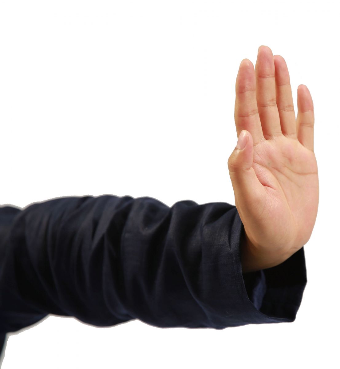 2. 須彌掌,手指向遠向上伸展,最後手指呈翹立姿勢,掌心向外。