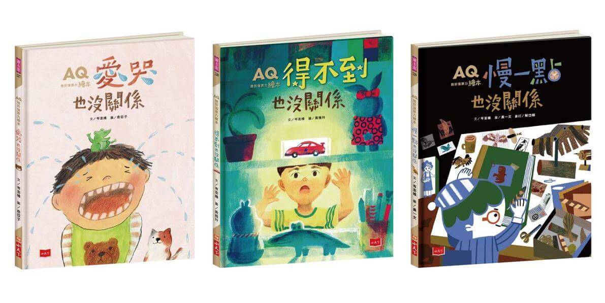 AQ(Adversity Quotient)泛指人面對挫折和困境的處理能力,挫折和困難也會隨著年紀有不同的等級和定義,AQ系列繪本運用《愛哭也沒關係》、《得不到也沒關係》和《慢一點也沒關係》三個故事來描寫這個許多人仍陌生的名詞-AQ,讓讀者跟著故事進入三個主角的心路歷程,了解到主角們面臨到的困難時,也練習為自己解開難題。