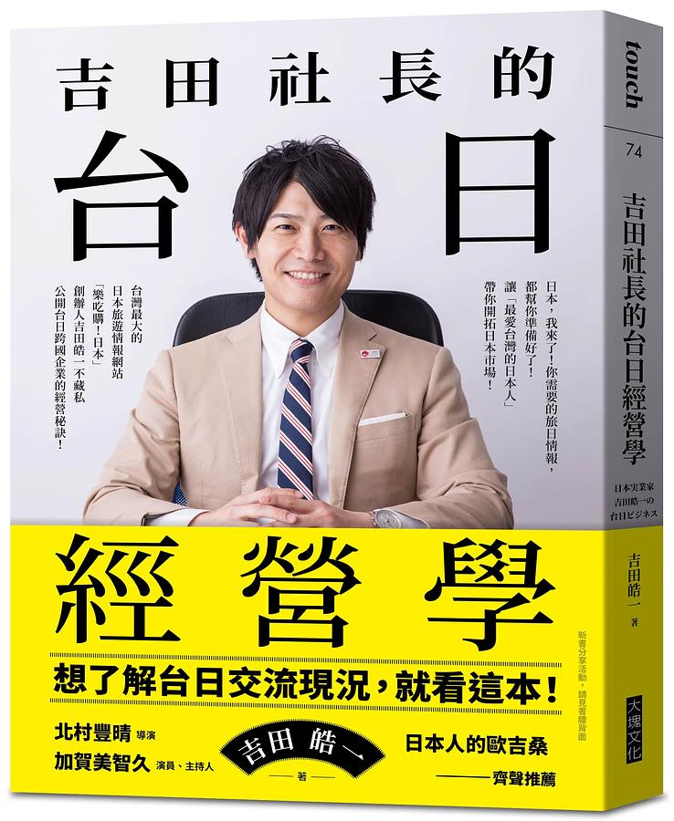 《吉田社長的台日經營學》作者吉田皓一於2012年創立了吉日媒體集團。現在活躍於台灣、日本的電視、廣播節目、雜誌專欄,因工作每月往返於東京與台北之間,致力於推廣台日觀光文化交流。現為YouTube《吉田社長 Japan TV》頻道主角,創立知名旅日情報網站《樂吃購!日本》,為「日本人の日本旅遊指南」Facebook粉絲團的版主。