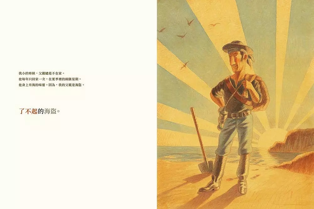 我小的時候,父親總是不在家。他每年只回家一次,在夏季裡的兩個星期。他身上有海的味道。因為,我的父親是海盜。了不起的海盜。他在家的時候,常常把我抱在他的膝上,攤開一幅散發著塵土味的大地圖,指給我看每一個他去過的地方。他會告訴我,他在哪裡攻擊了什麼船,還有多少次他們決定保留水手的性命來交換豐富的財寶。